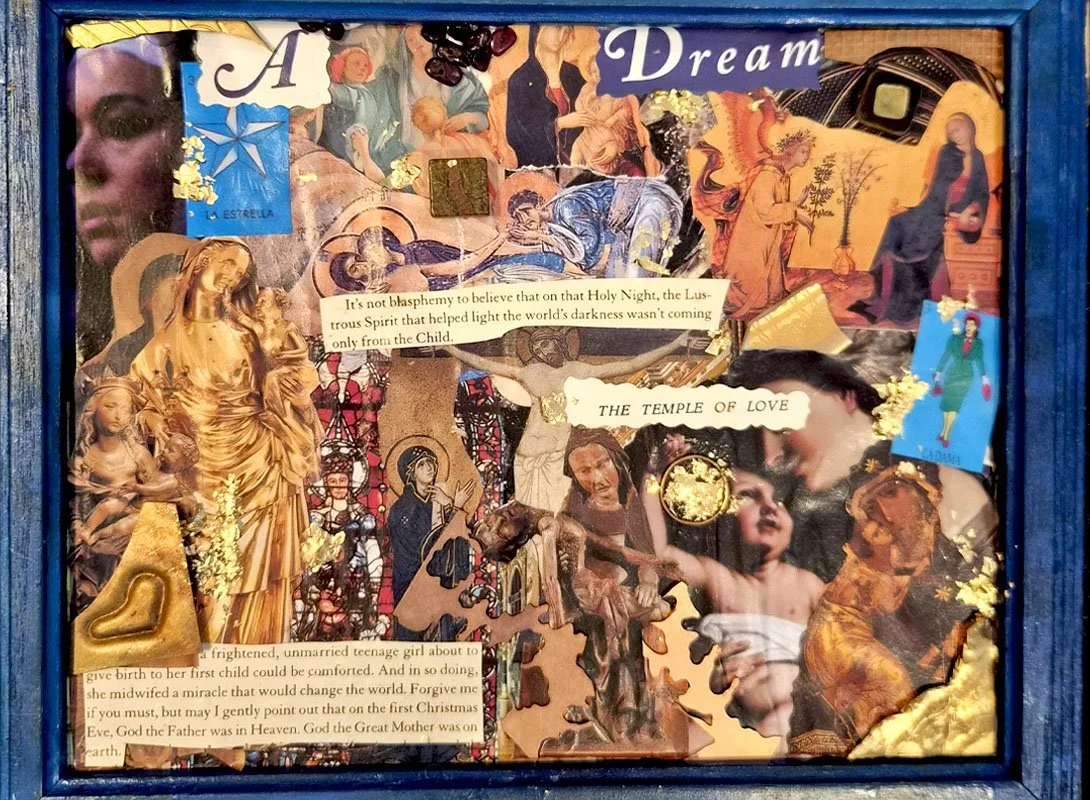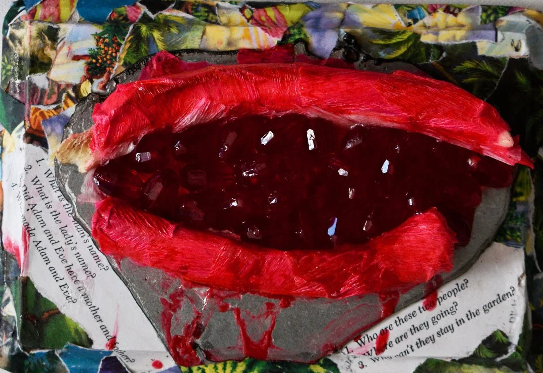 Acting as both Mother and Son, I buried my fear in layers of house paint and clay, crafting Christ's mouldable, ever-changing shape in my own. I hand-twisted his crown of thorns with old bra underwire–undergarments now rendered useless by change, piercing us one last time.