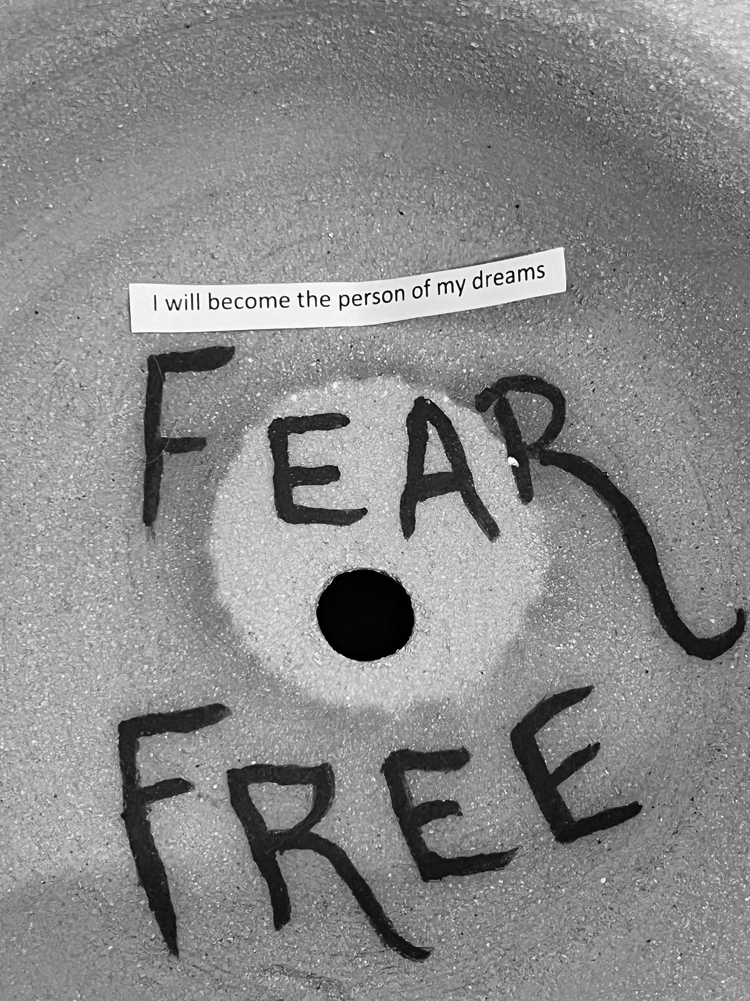 When we open ourselves up to the infinite possibilities contained within our minds, we are able to create functional changes in our lives. In Mental Mindset Monsters, we see a collection of ceramic monsters, a truck car door, and stained glass that embody the intersections of my interests: earth minerals and brain health. My creative process starts at the potter's wheel with an open slate, as I work the ancient material clay through my hands while manifesting the unlimited possibilities contained in each moment. The molecules and particles that make it possible to create this body of work have passed through time, developing the plasticity that allows them to be formed into the objects seen here. Through the process of focusing attention, making mistakes, and ample sleep, this body of work has fundamentally transformed my fixed mindset to one of growth. The neuroplasticity of the human brain enables the shift from a mindset of negative self-restraint to one of vast self-empowerment, possibility, and opportunity.