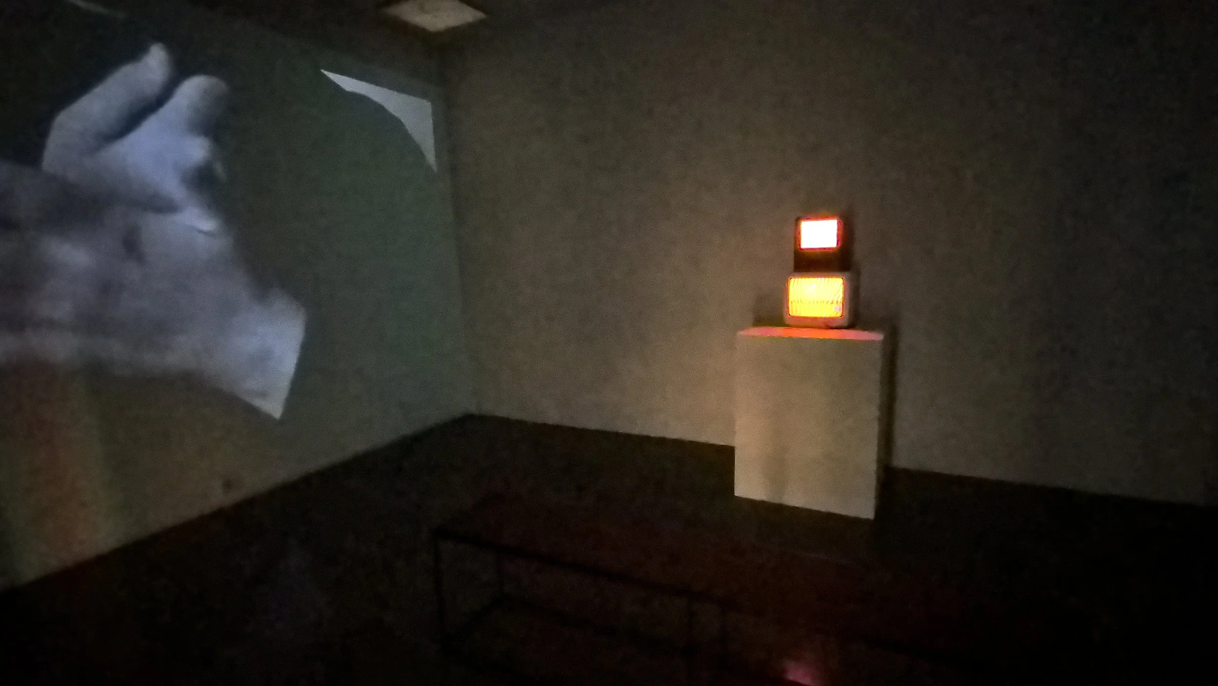 The installation explores how cochlear implants shape the experience of sound and communication. Manipulated audio on the CRT TVs cuts in and out, reflecting the fragmented and confusing quality of hearing through an implant, which neither erases Deafness nor ensures full access to the hearing world. Projections of ASL on walls highlight the fluidity of visual language and the centrality of visual perception in Deaf experience.