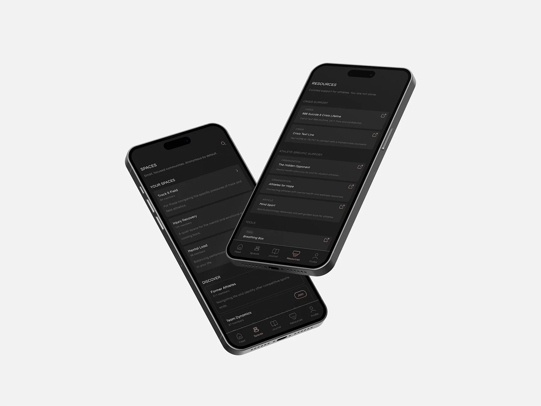 Instead of tracking performance, it centers journaling, shared experiences, and access to mental health resources. This reframes care as part of athletic practice.