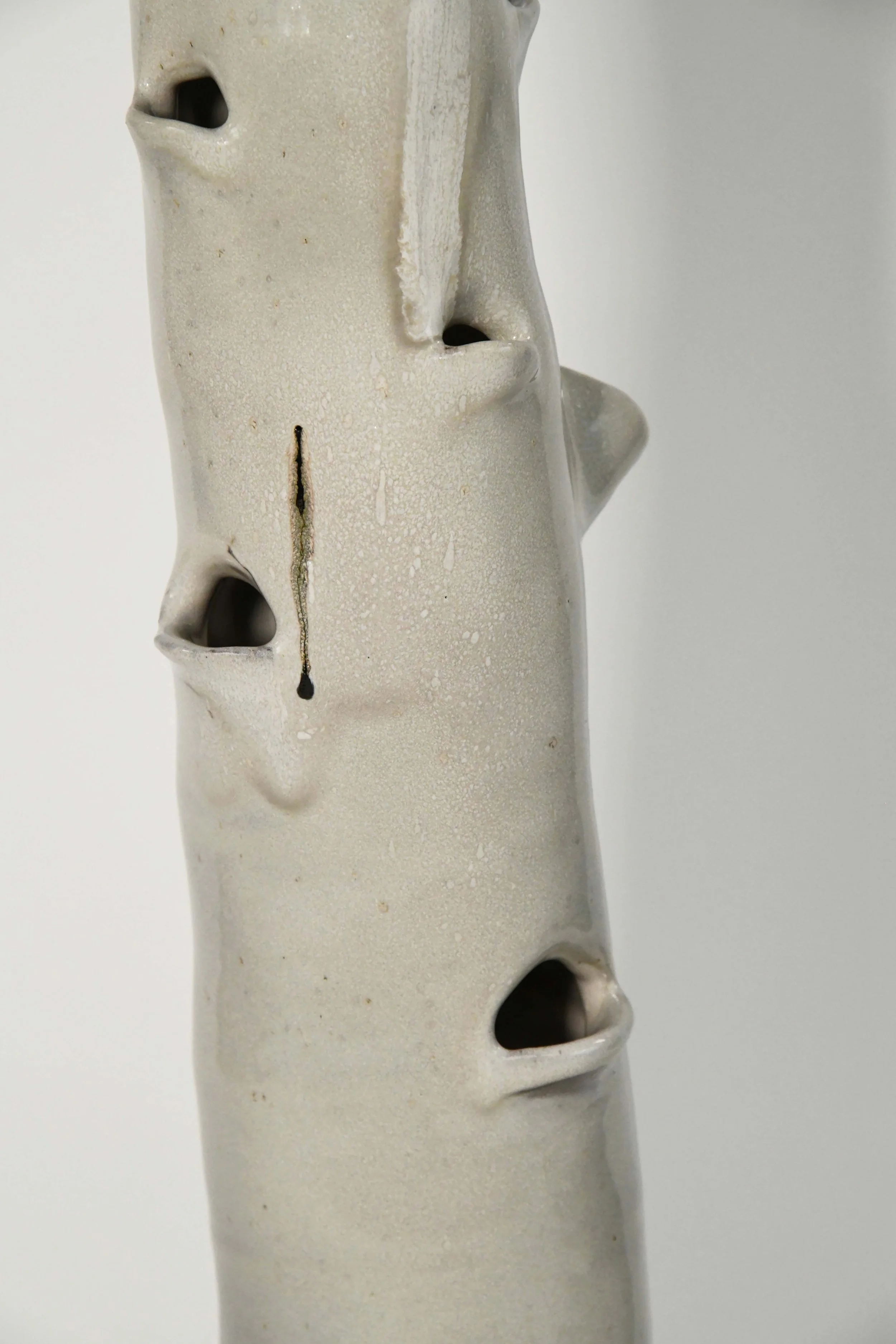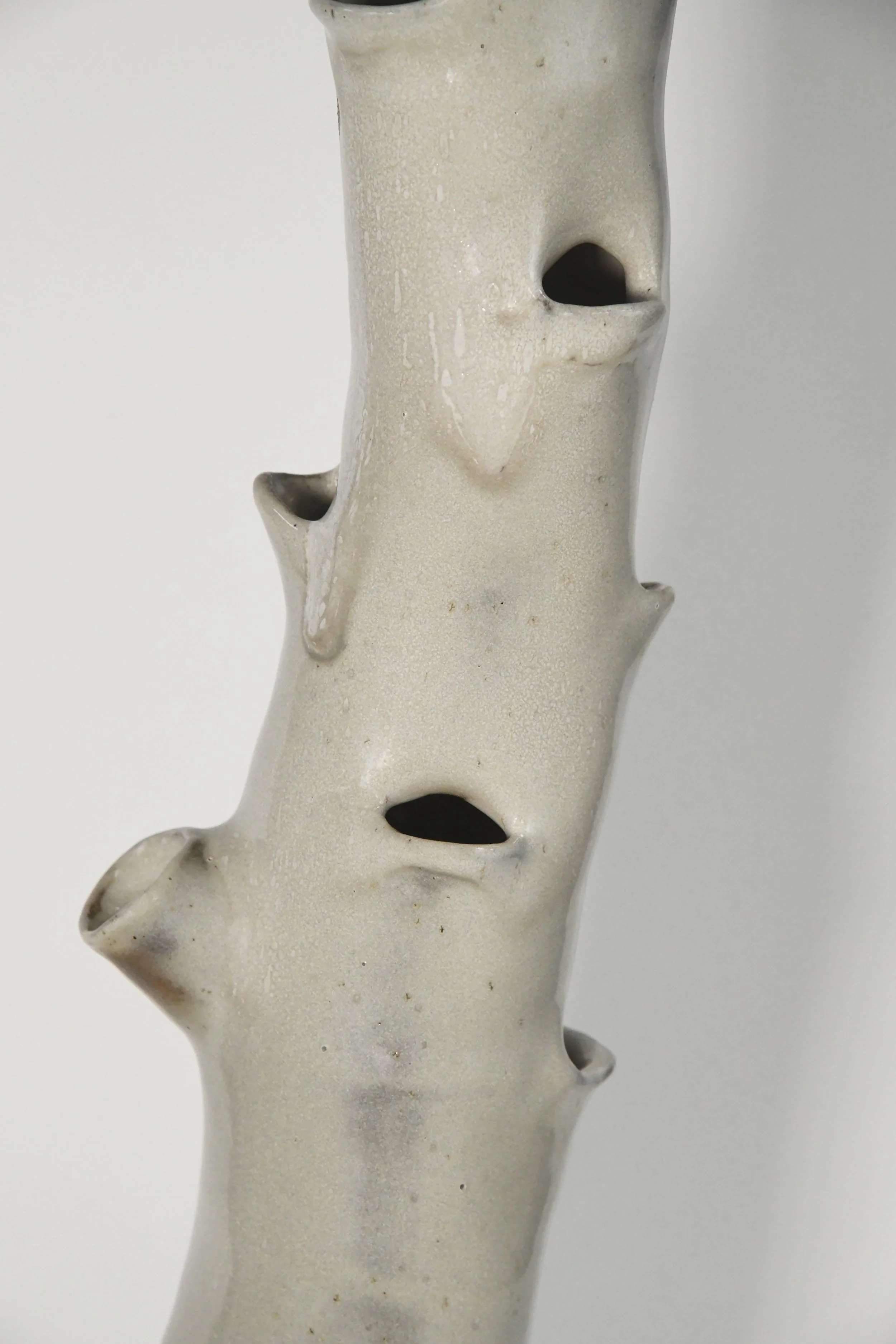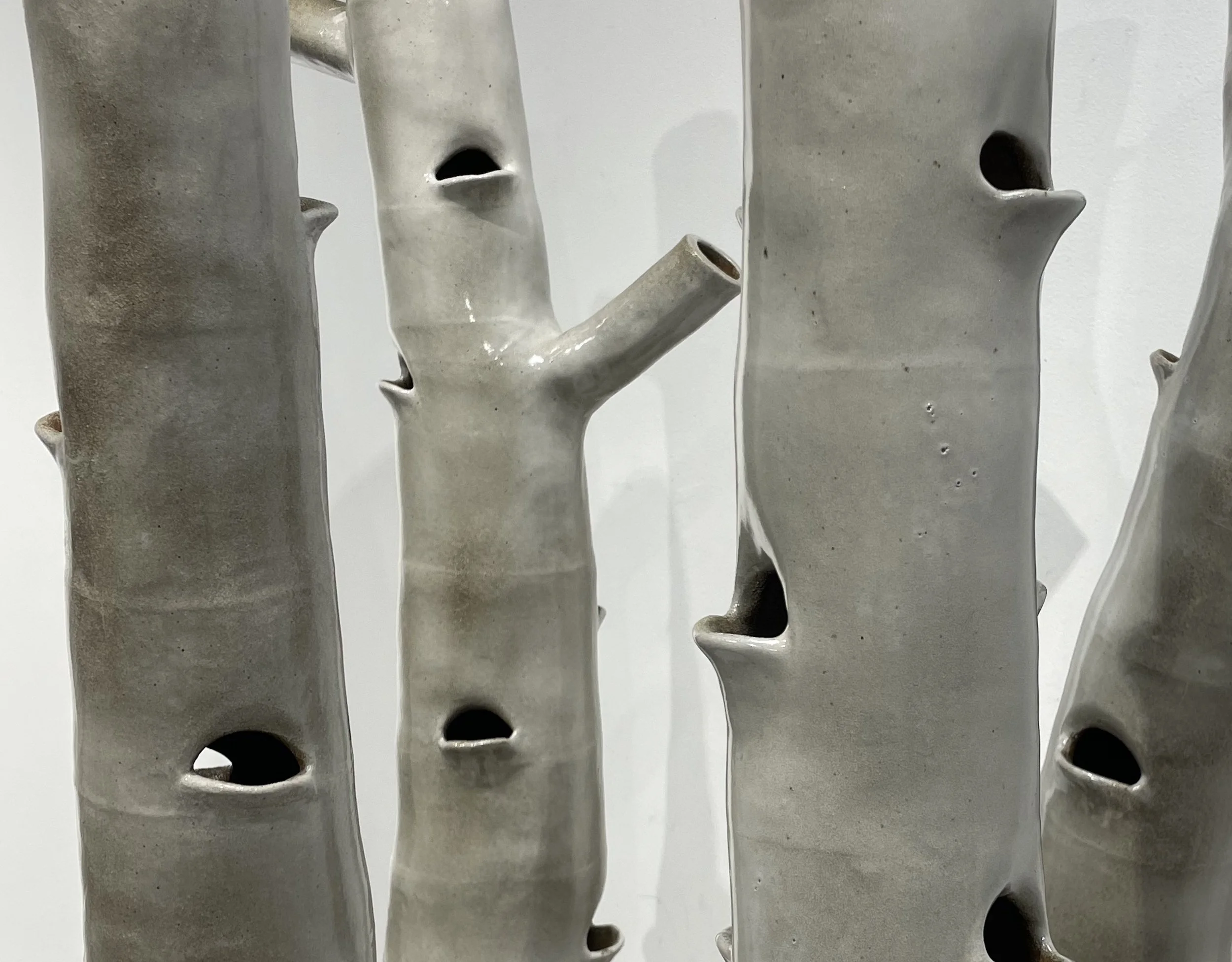 Adopting the organic, flowing forms of the natural world, this sculptural work celebrates the quiet repetition of aspen trees and the passing of seasons. Again, and Again brings their presence to an indoor space and makes these fleeting golden moments permanent by preserving them in a forever material–ceramic.